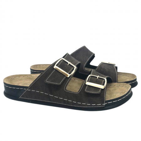 Papucii marca Doss model 335 de culoare maro inchis este destinat persoanelor care cauta un echilibru perfect intre confort si calitate. Realizati dupa forma anatomica a piciorului acesti saboti ofera suport optim picioarelor obosite si solicitate, fiind o solutie ideala, atat in cadrul activitatilor profesionale, cat si in cele de zi cu zi.
