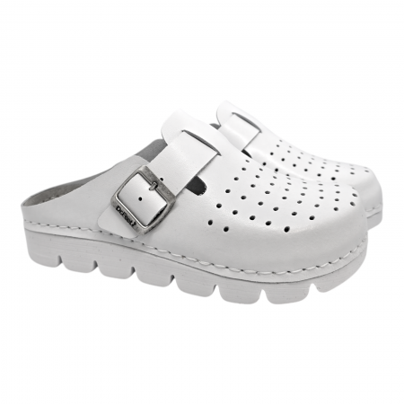 Sabotii medicali marca Dr.Feet modelul 1100 de culoare alba este o combinatie perfecte intre ultimile tendinte al modei cu confortul sporit, oferindu-ți combinația perfectă de stil și confort atât acasă, la serviciu, cât și in cele mai aglomerate zile din viata ta. Fiind lucrati din piele naturala italiana de cea mai buna calitate, combina luxul, eleganta si durabilitate.