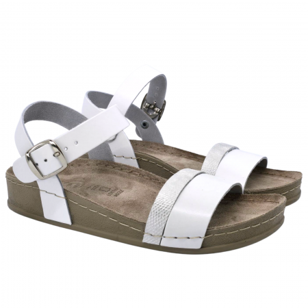 Sandalele cu talpa ortopedica marca Doss model 541 de culoare alba este destinat persoanelor care cauta un echilibru perfect intre confort si calitate. Realizati dupa forma anatomica a piciorului acesti saboti ofera suport optim picioarelor obosite si solicitate, fiind o solutie ideala, atat in cadrul activitatilor profesionale, cat si in cele de zi cu zi.
