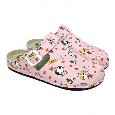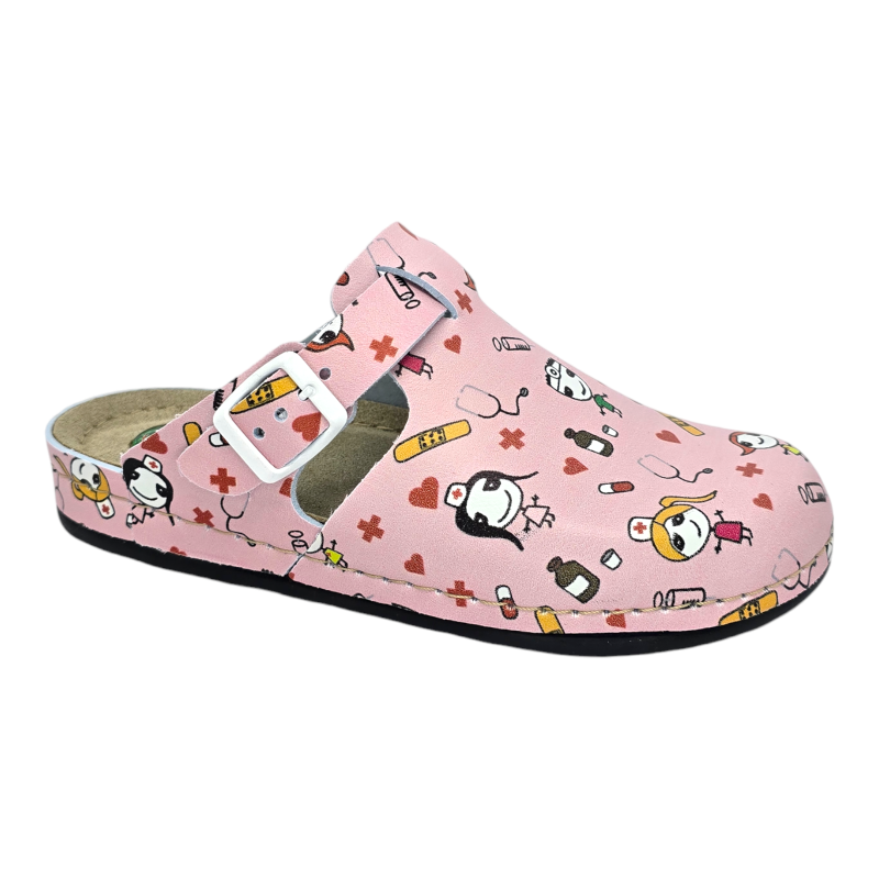 Sabotii medicali marca Dr.Feet modelul 1014 de culoare roz cu imprimeu medical este solutia ideala pentru orice persoana, care cauta un echilibru perfect intre confort si suport. Creati cu o atentie precisa pentru anatomia piciorului, acesti saboti ofera support optim si reduc oboseala, facandu-I o alegere ideal pentru purtarea pe tot parcursul zilei.