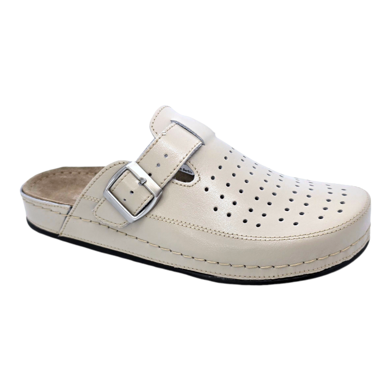 Sabotii medicali marca Doss model 249 de culoare bej deschis este destinat persoanelor care cauta un echilibru perfect intre confort si calitate. Realizati dupa forma anatomica a piciorului acesti saboti ofera suport optim picioarelor obosite si solicitate, fiind o solutie ideala, atat in cadrul activitatilor profesionale, cat si in cele de zi cu zi.